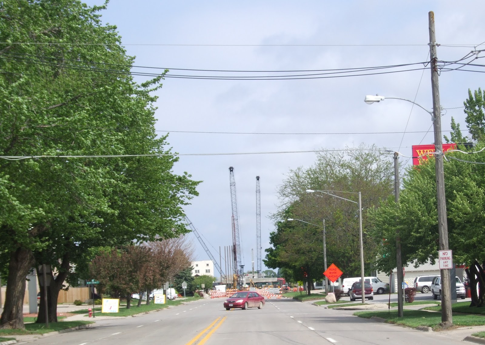 Jefferson is in a big construction project. Actually more than one but the pictures below are looking north on Elm street otherwise known as highway 4. An overpass is being built over the railroad track. We have many, many trains per day and at times it is very difficult to get across the track. And our one and only grocery store in the county is on the least populated side of town, north of the tracks.